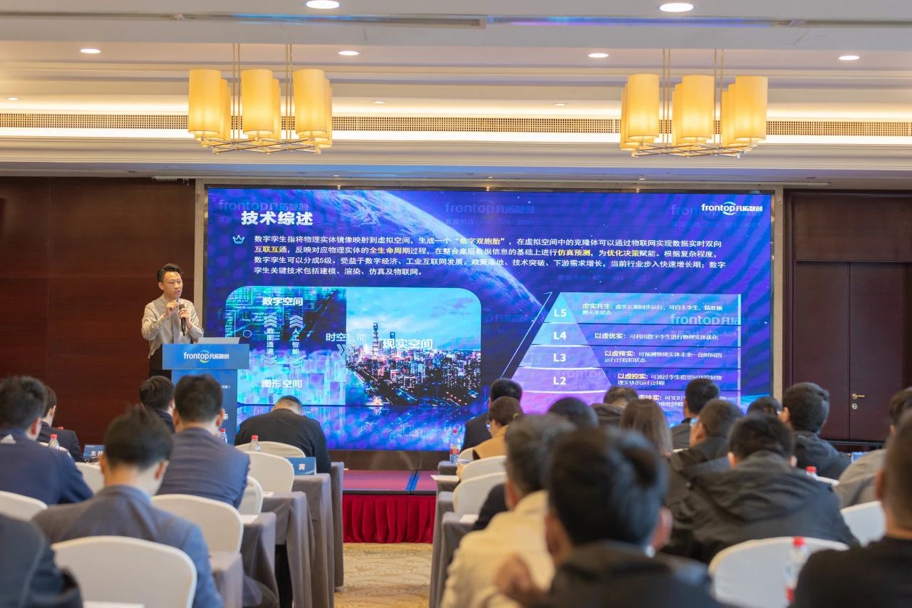 在精彩纷呈的主题报告环节,凡拓数创副总裁易小威发表了题为《凡拓数创AI数智孪生赋能行业应用,携手伙伴共赴未来》的报告。他介绍了凡拓数创在数字孪生、AI、3D数字人、虚实交互领域的最新研发成果和行业应用案例,展示了数字孪生技术在多个行业中的创新应用。